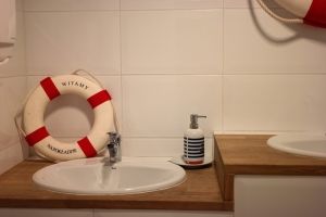 Skoro mowa o inwestowaniu to zainwestowałam chwilę czasu i pieniędzy na dobrą kawę, plac zabaw dla Jaśka oraz spotkanie z uroczą fit mamuśką. Anse Kabanse zaskoczyło mnie przytulnym wnętrzem, bo zawsze lubiłam pastelowe kolory, bezpiecznym placem zabaw dla dzieci. I uwaga pięknymi łazienkami! Kto by się tym zachwycał pomyśleliście, a jednak to ważne, bo widziałam już wiele i oszczędzę Wam moich wrażeń. Jedna z łazienek w Anse Kabanse jest w stylu marynarskim, drugie pomieszczenie jest z przewijakiem w balony i chmurki. Super, w końcu ktoś pomyślał i zadbał o te pomieszczenia, które są równie ważne dla nas jak i dla naszych pociech. Moja pociecha nie chciała wyjść z łazienki, tak się spodobała 😛
