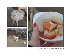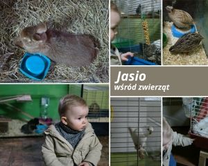 Przywitał nas skaczący po chacie królik, który był całkiem łasy na głaskanie. Czekały już na nas przygotowane przekąski dla zwierzaków: marchew, kawałki chlebka i jabłko. Niektóre zwierzęta przebywają nadal w chacie, ponieważ temperatura nie pozwala im jeszcze swobodnie biegać po podwórku. Jasiek podpatrywał milusińskich w swoich domkach. Całkiem podobały mu się papużki, przepiórki, króliki, chomiki, świnki morskie itp. Następnie opiekunki zwierząt Olga i Magda zaprosiły nas na wiejskie podwórko. Opowiadały o rodzajach składanych jaj przez ptaki, a także o pielęgnacji,karmieniu i hodowli.
