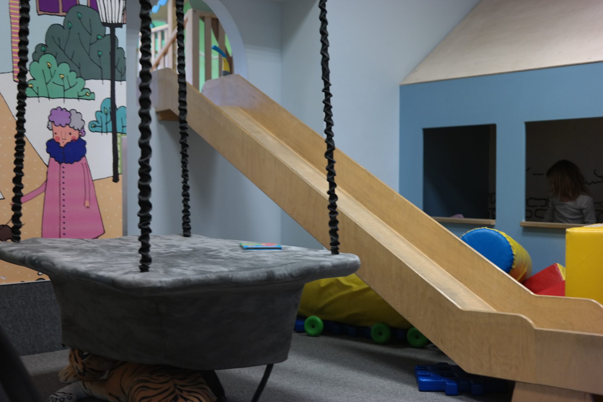 W kolorowym Pomponie nie brakuje atrakcji. Po zdjęciu bucików, dzieci mogą szaleć na zjeżdżalni, huśtawce, mogą chować się w domkach, bujać na ukrytym hamaku. Wszędobylskie auta, odkurzacze, misie, wózki sklepowe, klocki, zabawki sensoryczne umilają czas spędzony w dużej, kolorowej sali. Dla starszych dzieci jest toaleta zaraz przy sali, żeby nie było awarii :))) Przewijak dla najmłodszych możemy znaleźć po drugiej stronie lokalu.