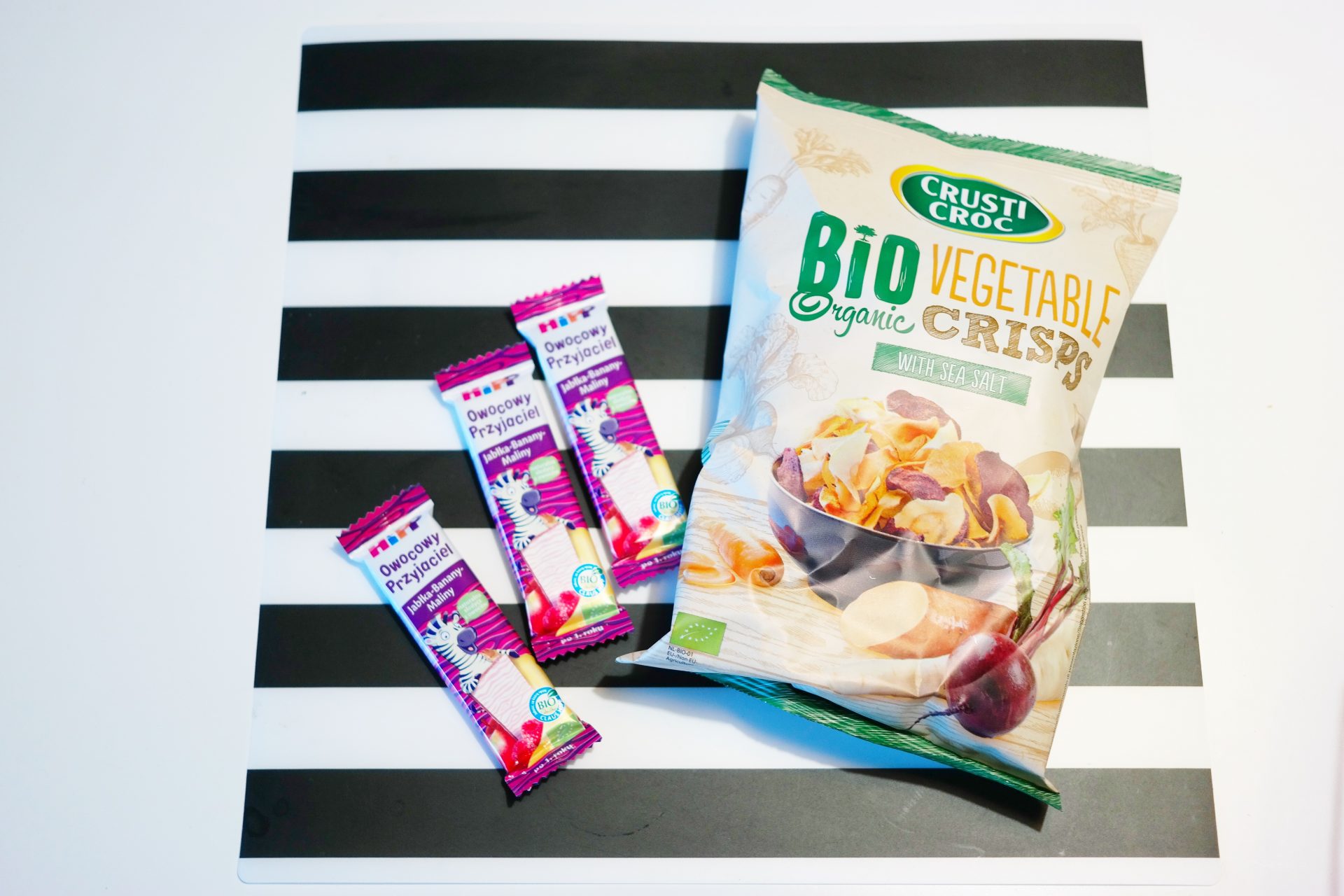 Od dawna kupuję Jasiowi owocowe batony jako słodkie przekąski. Polubił też warzywa w formie chipsów. Znaleźliśmy je w Lidlu, jednak cena jest dość spora i częściej robimy takie w domu.Wystarczy cienko pokroić warzywa, skropić oliwą lub olejem i posypać ulubionymi przyprawami, piec około 10 minut w temperaturze 220 stopni. Nie wiem czy wiecie, że pyszne batony owocowe można również przygotować w domu. Jeżeli jesteście ciekawi to obserwujcie bloga, a przepis wkrótce się pojawi 🙂